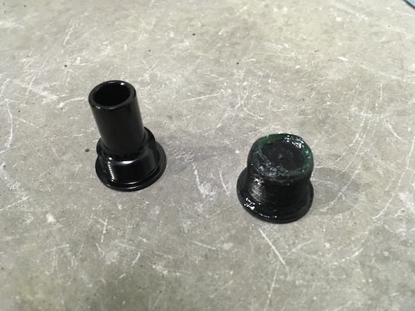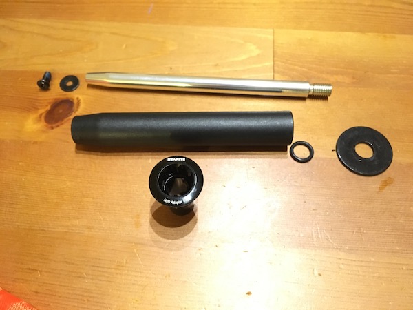 で、ホローBBに通すパーツは10mmの軸の上に19mmのカバーがかかっている状態。分解するとこんな感じです。