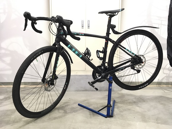 家人のグラベル・ロード(リアがスルー・アクセル)に、手持ちのメインテナンス・スタンドが合わないので、どうしたもんかなと思っていたところ、このスタンドの発売を知りました。ホローBB軸に通すタイプのスタンドです。代理店のAltenative Bicyclesさんに連絡を取って送っていただきました。川口市内(というか鳩ヶ谷)の業者さんです。ラブ地元。鳩ヶ谷には日東もありますね。